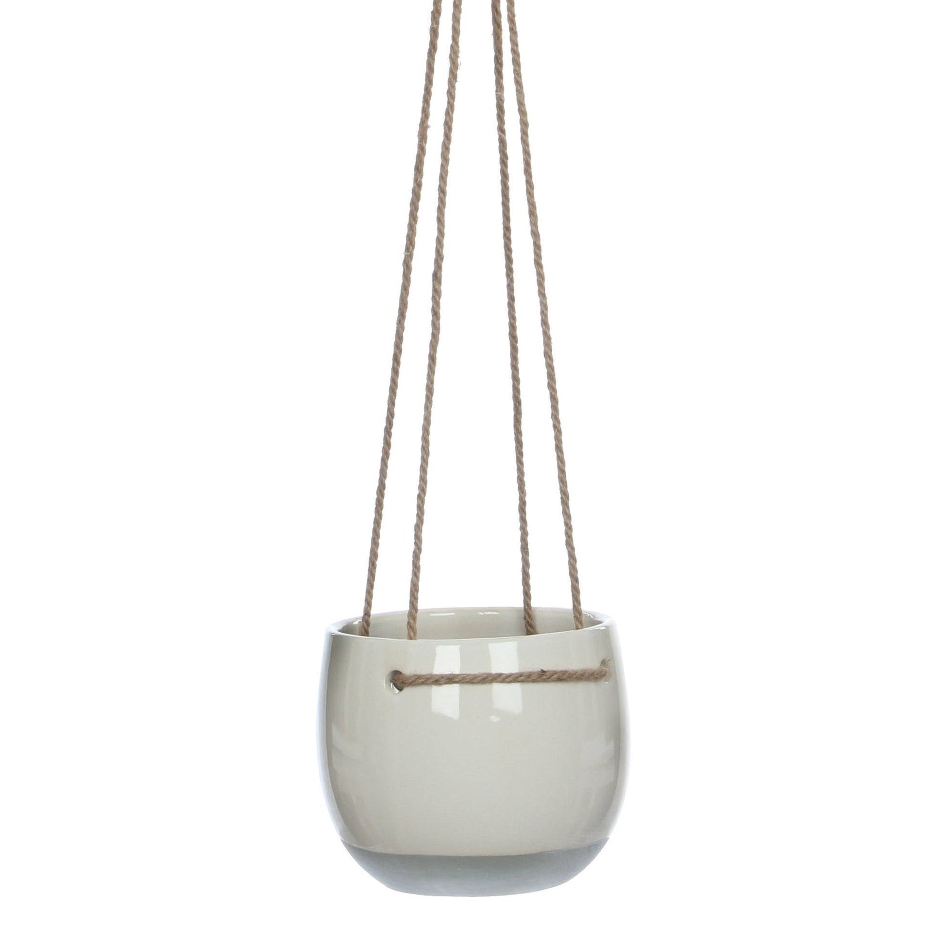 1x Resa White Hanging Pot - H13.5cm x D16.5cm