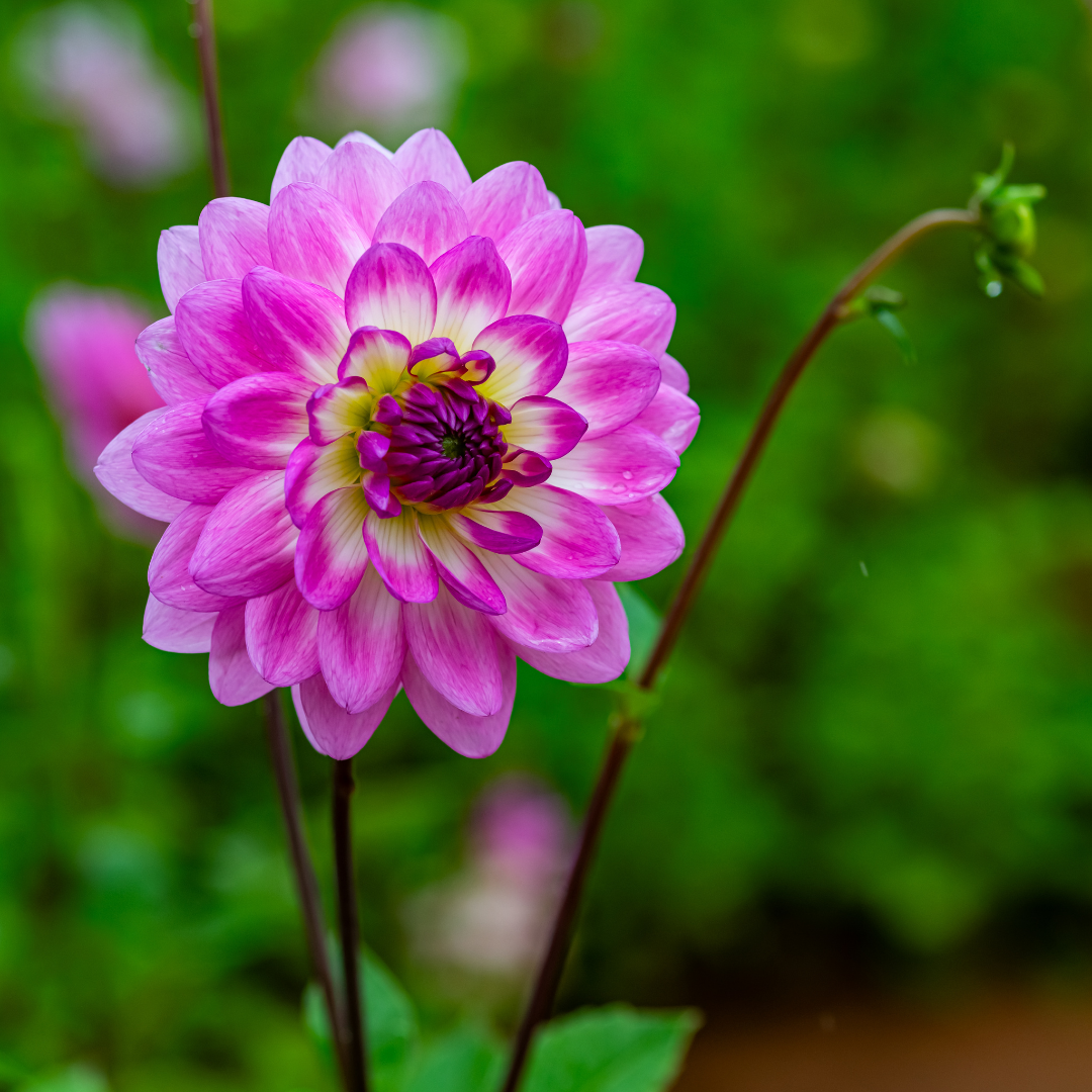 Dahlia requires a well-draining soil, if your gardens soil has too much clay then add some sand and compost to improve its quality. You can apply mulch to the top of the soil to keep the moisture in. The plant prefers heat and enjoys being in the full sun. They can endure shade during midday which will decrease their need for water.